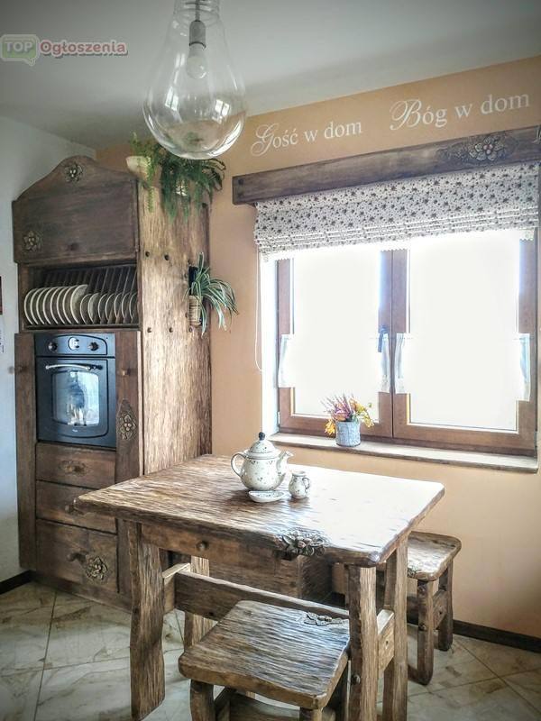 Z zewnątrz rustykalne, tworzące ciepły, przytulny nastrój. W środku funkcjonalne – w naszych meblach stosujemy współczesne rozwiązania takie jak szuflady i zawiasy z cichym domykiem, carga, systemy bezuchwytowe, a także zabudowany sprzęt AGD.